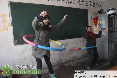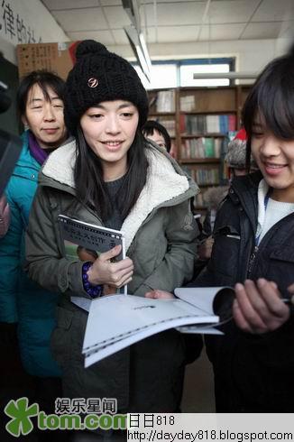 戴著毛線帽穿著樸素棉服的姚晨咧嘴一笑,就被擁進老師跟孩子的隊伍,大家都很激動地想對她說點什麼,這似乎是姚晨獨有的特質,面對她,幾乎沒有人怯場,沒有人感到有距離。老師拉著她家長里短,參觀學校每一間教室的時候總會不期然冒出幾個學生,拿著自己的作品擠到姚晨面前,自我介紹加要求簽名。和安排好的流程有所差別的是,姚晨總會發現自己的興趣點,她看到教室黑板報寫著“我的地盤我做主”標語時,專門問老師用這句話是否另有深意,她說,讓小孩從小就有保護自我個性的意識是一件很好的事。看到學校圖書館陳列的英文書籍,她也反應極快地問道,這些書孩子們看得了嗎?現在的小學生最喜歡看什麼類型的書?當她聽聞學校操場鋪的綠皮地資金來自周刊所在集團的“南都基金”後,也不免打趣記者,你們其實關心的事情很多啊,不止八卦我們,這些也該讓大家都知道!